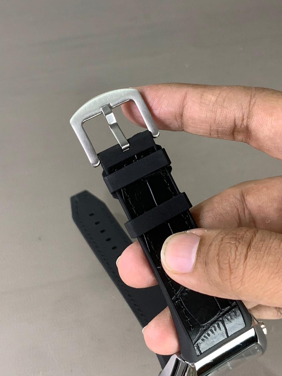 • Ultra-soft black silicone strap designed for comfort and durability.